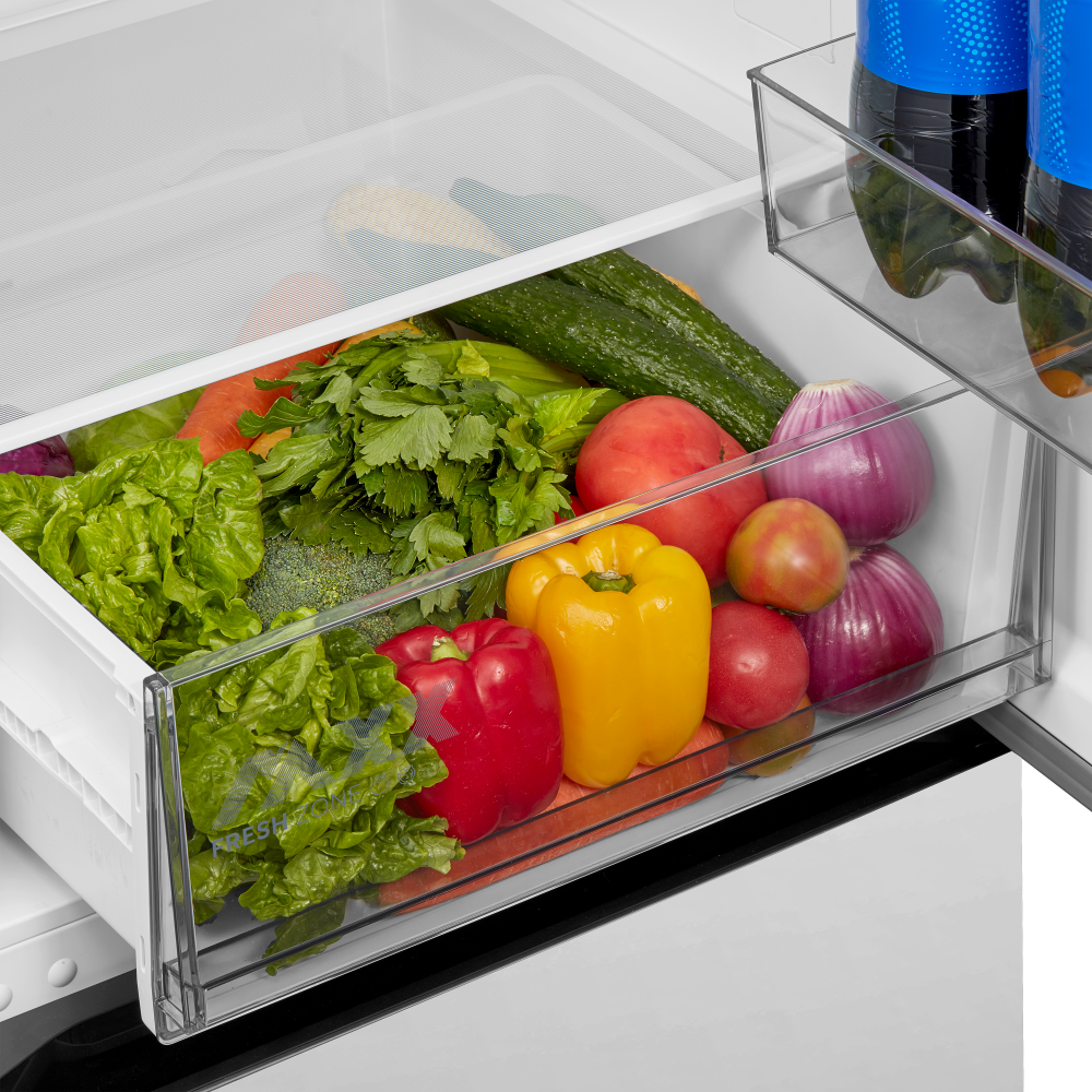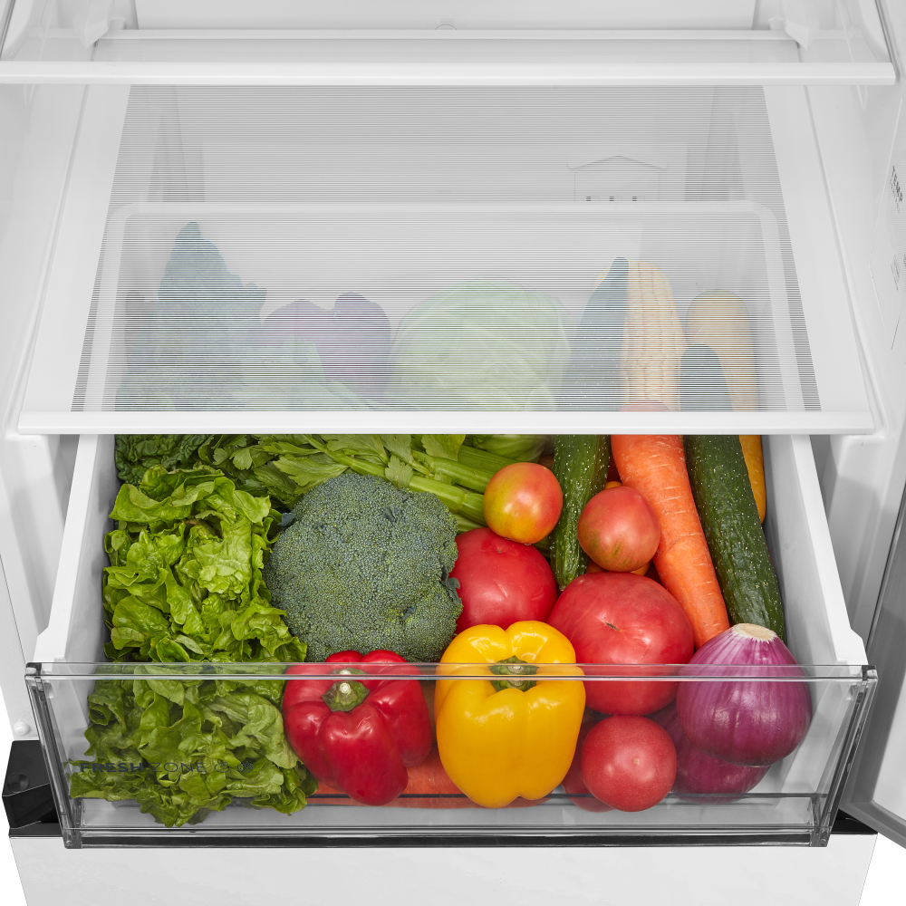 Специальная зона свежести предназначена для правильного и более длительного хранения овощей, фруктов, зелени. В ней поддерживается околонулевая температура, поэтому продукты не перемораживаются и не пересыхают. Система охлаждения этого холодильника — циркуляционная .