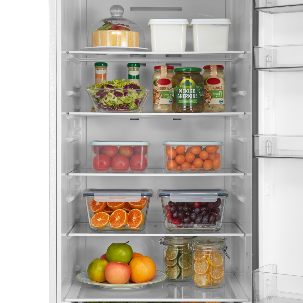 Полки в холодильнике позволяют рационально организовать хранение продуктов, обеспечить легкий поиск и доступ к ним. Основные материалы для изготовления полок — это пластик, стекло и металл. Часть полок можно переставлять по высоте или складывать вдвое или втрое.