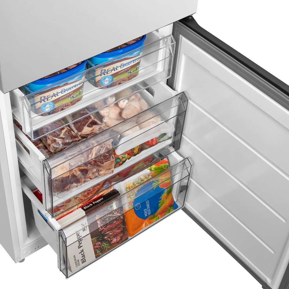 Трехкамерные модели выпускаются в нескольких вариантах. В некоторых случаях в качестве третьей камеры поступает так называемая зона свежести — отделение, где поддерживается температура около 0 градусов. В другом варианте подобные модели имеют морозильную камеру, состоящую из двух выдвижных ящиков.