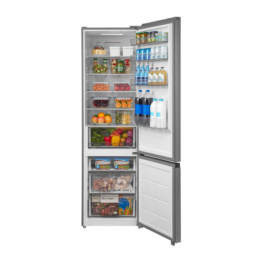 Стандартная ширина наиболее распространенных моделей двухкамерных холодильников с морозильной камерой снизу составляет порядка 60 см, что соответствует ширине обычной кухонной тумбы. Подобный холодильник будет смотреться уместно и не громоздко в любой кухне. Ширину 57-60 см имеют как двухдверные холодильники средней высоты, так и высокие модели. Все большую популярность приобретают узкие модели шириной 50 см, вместимость которых увеличивается за счет большой высоты от 180 см.