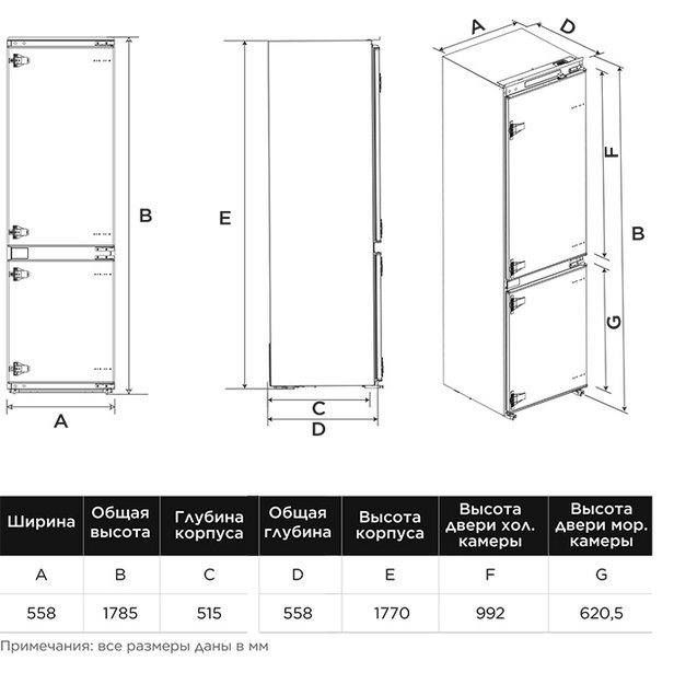 Высота холодильника — один из главных факторов, влияющих на выбор модели. Очевидно, что холодильник большей высоты будет более вместительным. Однако при выборе устройства необходимо учитывать целый ряд факторов, прежде всего высоту потолков, пищевые привычки, состав семьи, рост людей, которые будут холодильником пользоваться. Как правило, встраиваемые устройства представлены в несколько меньшем ассортименте, в том числе и по высоте.
