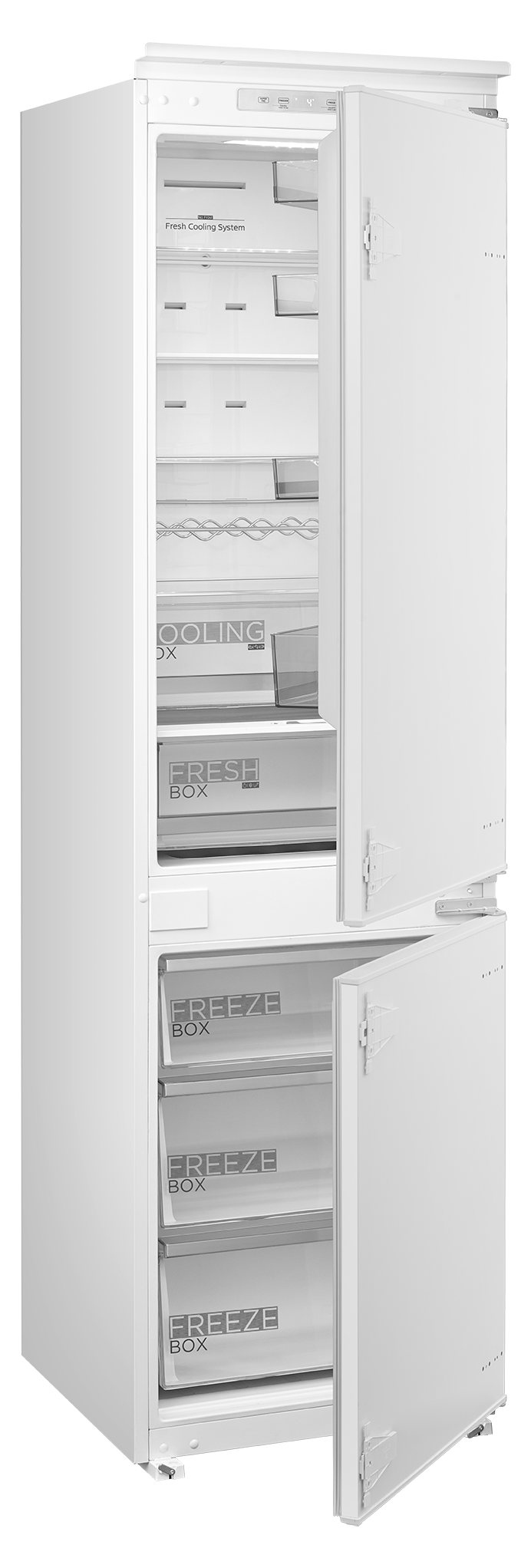 Встраиваемый прибор проще разместить в комнате, даже если общий метраж не такой уж большой. Вы можете спрятать его за декоративной панелью от мебельного фасада — советуем заранее определить нишу и заказывать панели исходя из типа крепления к двери. Благодаря внушительным размерам, в частности высоте, она подходит большим пространствам — просторной кухне, еврогостиной. Вы можете поменять направление открывания двери, так как упор переставляемый и ее можно перевесить на другую сторону. Такая функция открывает больше возможностей для установки. Холодильник с морозильником обладает всеми опциями, которые чаще всего ищут и выбирают покупатели. Стандартная конфигурация — универсальный вариант для любой квартиры. Количество камер: 2.