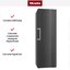 Фронт выполнен в черном цвете, а внешняя ручка двери идеально вписывается в общий стиль. Дверной упор расположен справа, однако есть возможность его перевешивания. Устройство оснащено доводчиком, что обеспечивает плавное и мягкое закрытие дверцы, исключая риск случайного удара. Система управления сенсорная, на дисплее отображается всю необходимую информацию, что упрощает процесс использования.