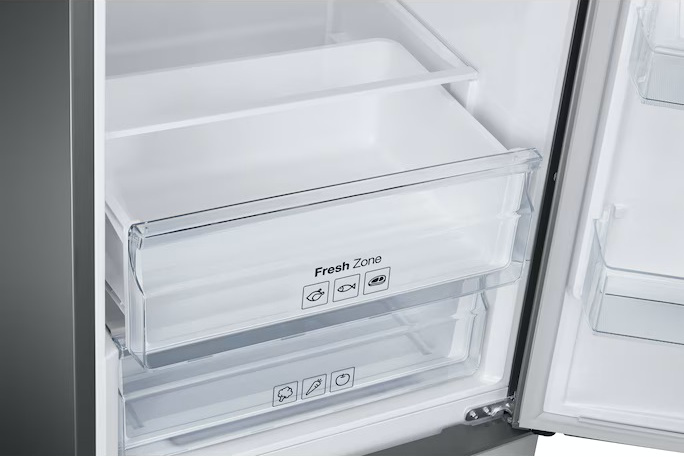 Вместительные контейнеры позволяют хранить достаточное количество овощей и фруктов. Для более длительного хранения и поддержания свежести овощей и фруктов разработаны специальные системы хранения. Среди них, например, зона свежести с увеличенной влажностью до 85% и температурой около 0 градусов. Это герметично закрывающийся ящик, часто на выдвижных роликах или направляющих, в котором имеется специальное задвижка, позволяющая регулировать влажность. Как известно, при более высокой влажности продукты с большим содержанием воды дольше остаются свежими.