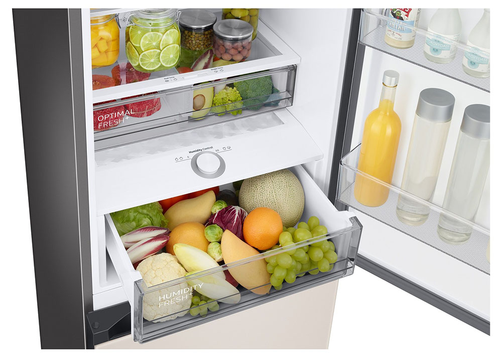 Вместительные контейнеры позволяют хранить достаточное количество овощей и фруктов. Для более длительного хранения и поддержания свежести овощей и фруктов разработаны специальные системы хранения. Среди них, например, зона свежести с увеличенной влажностью до 85% и температурой около 0 градусов. Это герметично закрывающийся ящик, часто на выдвижных роликах или направляющих, в котором имеется специальное задвижка, позволяющая регулировать влажность. Как известно, при более высокой влажности продукты с большим содержанием воды дольше остаются свежими.