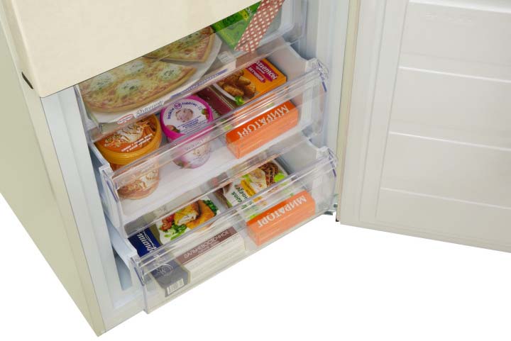 Трехкамерные модели выпускаются в нескольких вариантах. В некоторых случаях в качестве третьей камеры поступает так называемая зона свежести — отделение, где поддерживается температура около 0 градусов. В другом варианте подобные модели имеют морозильную камеру, состоящую из двух выдвижных ящиков.