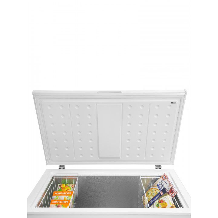 Внутренняя камера морозильного ларя, как правило, не содержит полок, ящиков и других подобных разделителей — это большой цельный отсек, в котором сверху могут крепиться металлические сетчатые корзины. Такая конструкция позволяет максимально увеличить вместительность устройства.