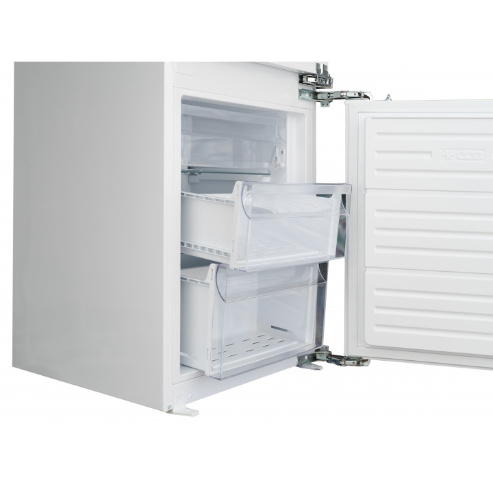 Встраиваемый прибор проще разместить в комнате, даже если общий метраж не такой уж большой. Вы можете спрятать его за декоративной панелью от мебельного фасада — советуем заранее определить нишу и заказывать панели исходя из типа крепления к двери. Способ монтажа в данной модели: жесткое крепление (система door on door) Вы можете поменять направление открывания двери, так как упор переставляемый и ее можно перевесить на другую сторону. Такая функция открывает больше возможностей для установки. Холодильник с морозильником обладает всеми опциями, которые чаще всего ищут и выбирают покупатели. Стандартная конфигурация — универсальный вариант для любой квартиры. Количество камер: 2.
