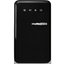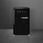 Черный холодильник в стиле 50-х годов XX в. Маленькая морозильная камера состоит из одного отделения, расположена вверху. В холодильном отделении есть регулируемые и фиксированные полки, отделение для бутылок, подставка для яиц и лоток для льда.