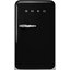 Черный однодверный холодильник в стиле 50-х годов XX в. В основной камере регулируемые полки из закаленного стекла и ящик для овощей. Она размораживается автоматически, а морозильный отсек вручную. Держит холод до 8 часов при отключении электричества.