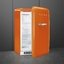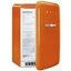 Оранжевый однодверный холодильник в стиле 50-х годов XX в. Электронное управление и сочетание автоматического и ручного размораживания позволяют создать оптимальные условия для хранения продуктов. В холодильной камере регулируемые полки из закаленного стекла и ящик для овощей.