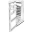 Для стеклянных бутылок, особенно винных и содержащих другие алкогольные напитки, предусматривается размещение на подвесной решетчатой металлической полке. Бутылки на ней располагаются в горизонтальном положении — это оптимальный способ хранения вин. Съемная металлическая полка легко моется под краном.