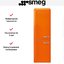 Smeg FAB32LOR5 — холодильник высотой 197 см объемом 365 литров и высотой 197 см. Корпус оранжевого цвета выполнен в стиле 50-х годов. Уход за устройством облегчает система размораживания No Frost. Быстро понизить температуру при загрузке большого количества продуктов поможет режим суперзаморозки.