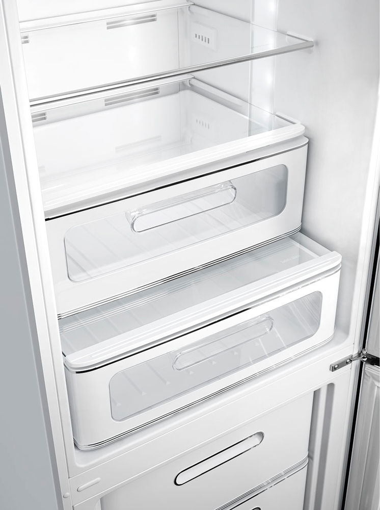 Некоторые модели Smeg до сих пор имеют только опцию ручного размораживания. В этом случае необходимо сначала убрать все продукты, затем отключить прибор от сети, открыть все двери и оставить так до 24 часов (рекомендуемое время производители указывают в инструкции). Если ваш холодильник работает с технологией No Frost, самостоятельно никаких манипуляций проводить не нужно, размораживание происходит автоматически.