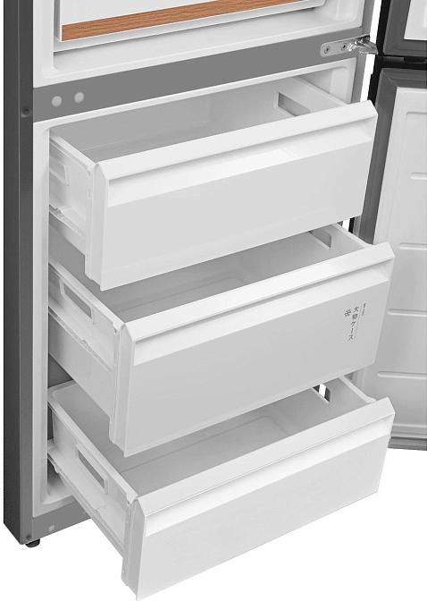 Трехкамерные модели выпускаются в нескольких вариантах. В некоторых случаях в качестве третьей камеры поступает так называемая зона свежести — отделение, где поддерживается температура около 0 градусов. В другом варианте подобные модели имеют морозильную камеру, состоящую из двух выдвижных ящиков.