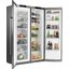 Холодильники Side-by-Side, что в переводе означает «бок-о-бок», — вместительные устройства, в которых холодильная и морозильная камеры располагаются рядом друг с другом. Они предназначаются для хранения значительного запаса продуктов и иногда называются холодильниками с американским типом компоновки, поскольку такие приборы с распашными дверями появились именно в США.