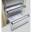 Холодильники с так называемой французской дверью или French Door также имеют распашные двери, но за ними находится не две, а одна камера. Эти двери занимают не всю высоту холодильника, а только ее часть. В нижней части подобных холодильников могут находиться либо еще две распашные двери, либо выдвижные морозильные ящики.