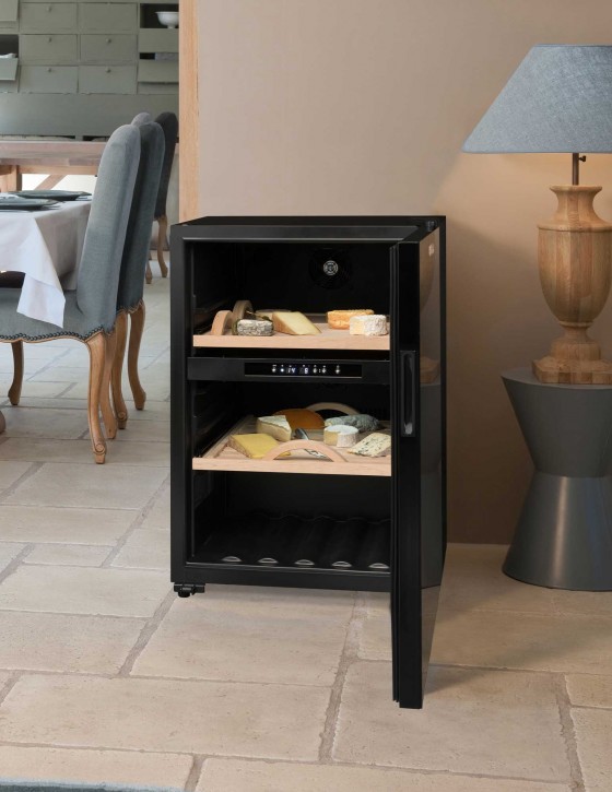 Шкаф для хранения сыра La Sommeliere CAF52 — изысканное и функциональное решение для ценителей тонких гастрономических удовольствий, созданное для идеального сохранения аромата, текстуры и вкуса различных сортов сыра. Эта отдельностоящая модель сочетает в себе элегантный дизайн, продуманную инженерию и профессиональные параметры хранения, позволяя поддерживать оптимальные условия для выдержки и созревания деликатных молочных изделий. Габариты устройства — 84,8 см в высоту, 59,5 см в ширину и 67,5 см в глубину — обеспечивают компактное размещение даже в небольших помещениях, не нарушая гармонии интерьера. При этом внутреннее пространство достаточно вместительно для формирования полноценной сырной коллекции. Особенностью модели является наличие двух независимых температурных зон, каждая из которых может быть настроена в диапазоне от 5 до 20 C. Это позволяет одновременно хранить мягкие сорта, требующие прохлады, и твёрдые или выдержанные сыры, которым необходимы более тёплые условия для раскрытия букета. Такая гибкость особенно ценна для гурманов, сомелье и коллекционеров, стремящихся к максимальной точности в уходе за продуктом. Внутренняя среда шкафа поддерживает стабильную влажность и циркуляцию воздуха, предотвращая пересыхание корок и развитие посторонних запахов. Продуманная вентиляция и качественная теплоизоляция обеспечивают равномерное распределение температуры по всем полкам, исключая резкие перепады, губительные для деликатных изделий. Дверца выполнена с использованием ультрафиолетозащитного стекла, которое не только подчёркивает эстетику содержимого, но и защищает сыр от вредного воздействия света. Устройство работает тихо, не нарушая атмосферы уюта в доме или винном погребе. Благодаря надёжной сборке и использованию качественных компонентов, шкаф обеспечивает долговечную и стабильную работу без необходимости частого обслуживания. Он станет не просто местом хранения, а настоящей «сырной комнатой» в миниатюре — пространством, где каждый сорт получает индивидуальный уход и условия, соответствующие его характеру. Этот прибор идеально дополнит интерьер кухни, столовой или винного уголка, подчеркнув изысканный вкус владельца. Для тех, кто воспринимает сыр как искусство, а не просто продукт, данная модель — разумный и вдохновляющий выбор.