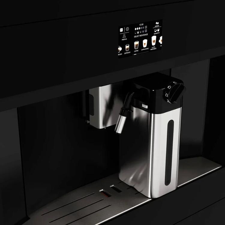 Встраиваемые кофемашины — автоматические устройства для приготовления напитков с молоком или без него. Весь процесс приготовления, от помола зерен и до очистки и промывки по завершении, происходит без участия пользователя. Машины оснащаются вместительными контейнерами для зерен, воды и молока с легким доступом. Размеры встроенных устройств позволяют устанавливать их в колонну с другой техникой: ширина составляет около 60 см, а высота — около 45 см. Как правило, все модели изготавливаются в современном стиле, оснащаются сенсорным управлением, подсветкой, полкой для подогрева чашек.