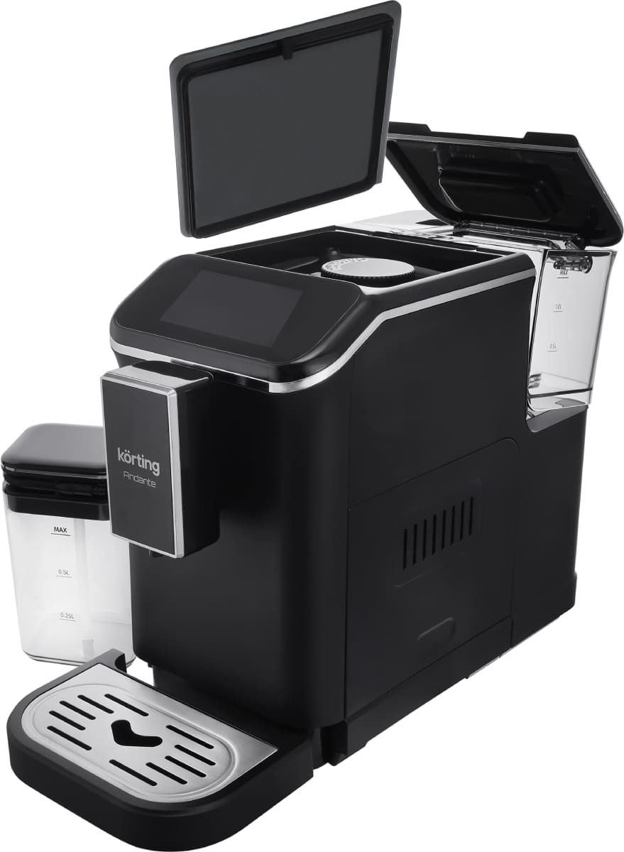 В модели Korting KACM 2002 Andante используются сразу два типа кофе — молотый и зерновой: это расширяет ваши возможности и увеличивает разнообразие напитков, которые можно приготовить с отличиями в крепости, ароматности и терпкости. Автоматическая кофемашина — по сути облегченная и уменьшенная версия приборов из кафе, она обладает широкими возможностями, разнообразным меню и продуманной системой контроля за процессом. Это отличный выбор как для дома, так и для офиса.