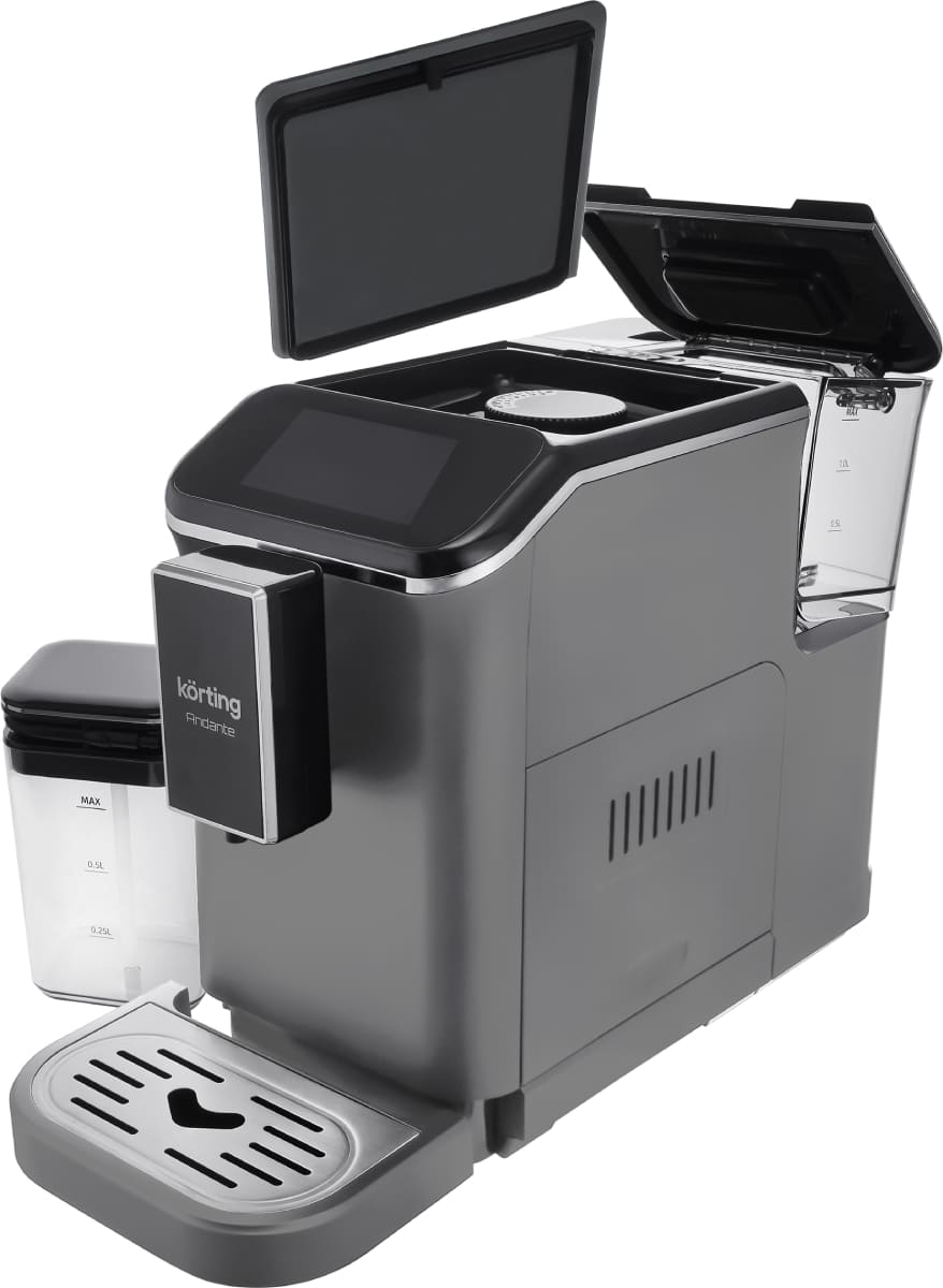 В модели Korting KACM 2003 Andante используются сразу два типа кофе — молотый и зерновой: это расширяет ваши возможности и увеличивает разнообразие напитков, которые можно приготовить с отличиями в крепости, ароматности и терпкости. Автоматическая кофемашина — по сути облегченная и уменьшенная версия приборов из кафе, она обладает широкими возможностями, разнообразным меню и продуманной системой контроля за процессом. Это отличный выбор как для дома, так и для офиса.