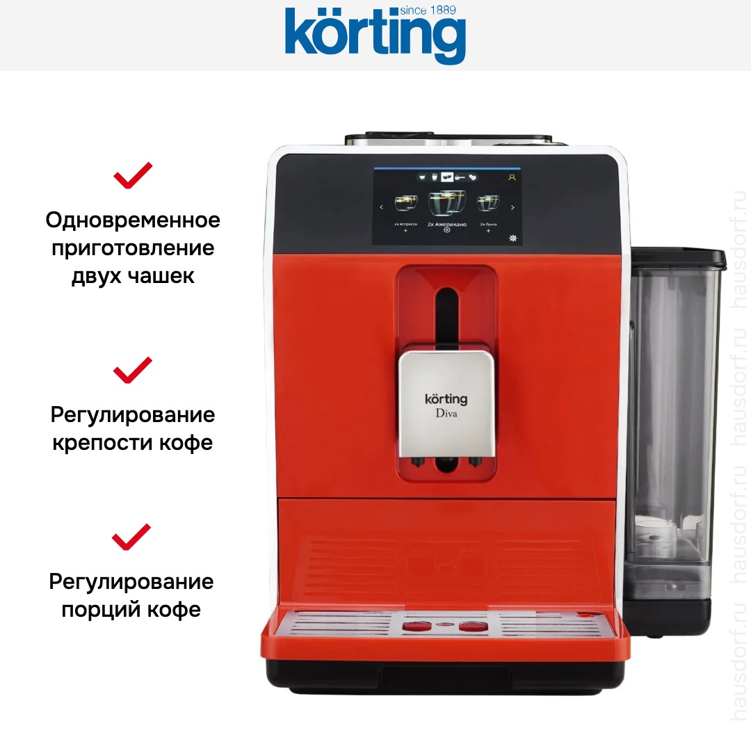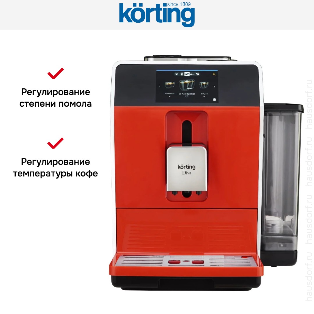Кофемашина Korting KACM 2005 Diva — это стильное и функциональное устройство, созданное для тех, кто ценит разнообразие, качество и комфорт в приготовлении кофе. Модель поддерживает работу как с цельными зёрнами, так и с уже молотым кофе, что даёт полную свободу выбора: от свежесмолотого ароматного эспрессо до быстрого лунго из любимого помола. Такая универсальность делает её идеальной для разных ситуаций — будь то утренний ритуал, деловой перерыв или приём гостей.
