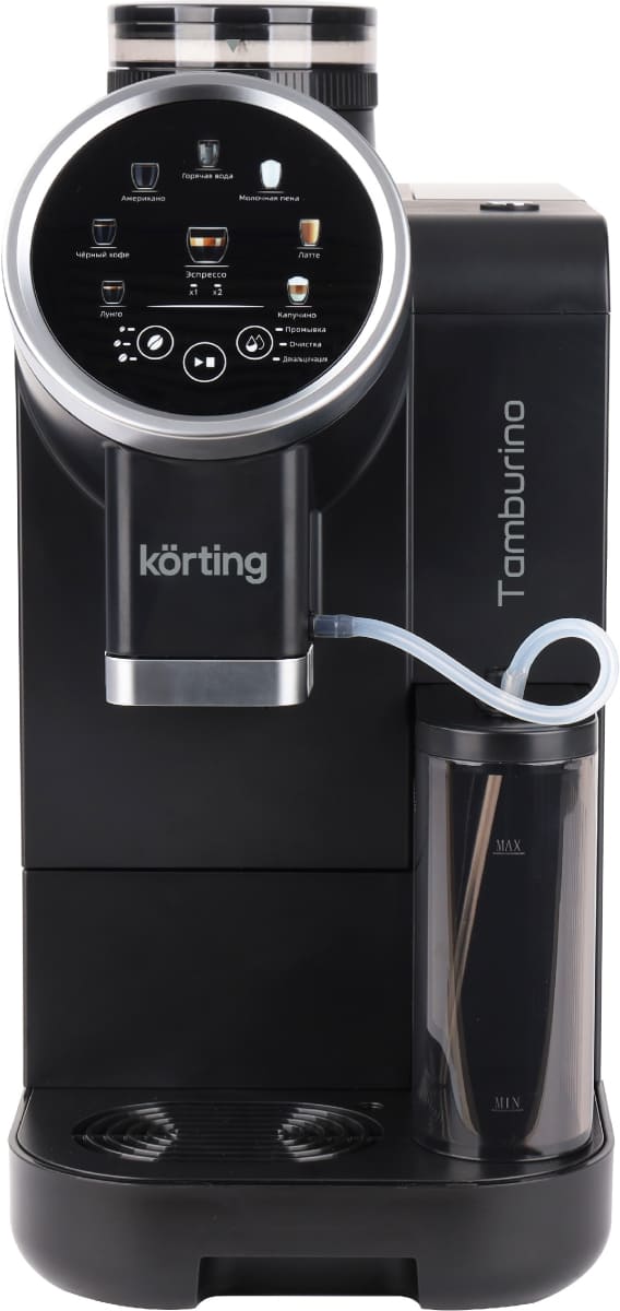 В модели Korting KACM 2028 N Tamburino используются сразу два типа кофе — молотый и зерновой: это расширяет ваши возможности и увеличивает разнообразие напитков, которые можно приготовить с отличиями в крепости, ароматности и терпкости. Автоматическая кофемашина — по сути облегченная и уменьшенная версия приборов из кафе, она обладает широкими возможностями, разнообразным меню и продуманной системой контроля за процессом. Это отличный выбор как для дома, так и для офиса.