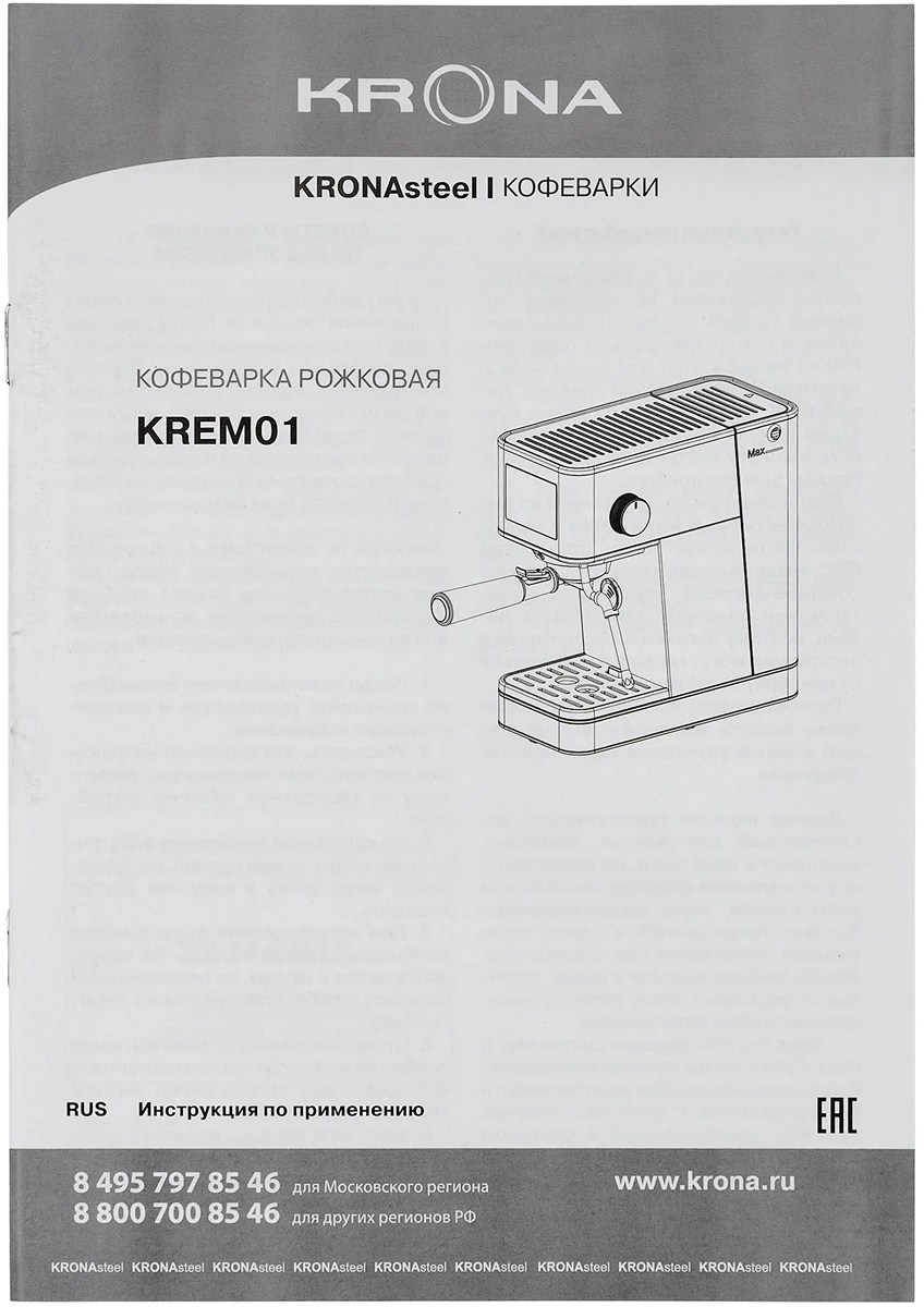 Кофеварка KRONA Espresso Kaffeemaschine Inox КА-00008023 в Санкт-Петербурге