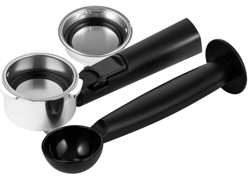 Рожок в рожковых кофемашинах всегда изготавливается из металла и пластика. Рожок, он же портафильтр или холдер, представляет собой фильтродержатель с ручкой, основной элемент конструкции рожковой кофемашины. Молотый кофе помещается в рожок, уплотняется, после чего он закрепляется в варочной группе машины. Стальные массивные рожки хорошо сохраняют температуру и позволяют готовить напитки высокого качества. В машинах для дома рожок часто изготавливается из пластика или комбинации пластика и металла — такая конструкция отличается меньшей прочностью, но на вкус напитка почти не влияет.