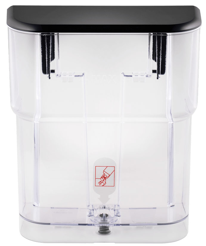 Съемный контейнер для воды во встраиваемых и отдельно стоящих кофемашинах — удобный аксессуар, позволяющий ускорить процесс приготовления напитков. Прозрачные контейнеры с легким доступом могут размещаться на фронтальной или верхней части машины. Для удобного извлечения они оснащаются ручками, залив воды производится через отверстие, которое можно закрыть плотной крышкой. Форма контейнера, как правило, прямоугольная, а материалом изготовления служит прозрачный безопасный пластик. Контейнеры могут оснащаться датчиком уровня воды для напоминания о необходимости их заполнения.