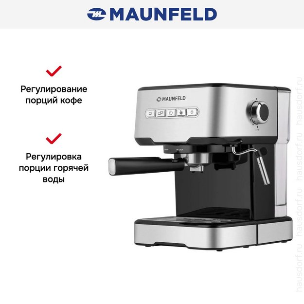 В модели Maunfeld MF-724S используется молотый кофе: экспериментируйте с сырьем крупного и среднего помола, чтобы добиться идеального вкуса. Данная рожковая кофемашина предназначена в основном для приготовления эспрессо и капучино; благодаря быстрой работе и отсутствию кофейной взвеси в чашке она востребована как в быту, так и в офисах.