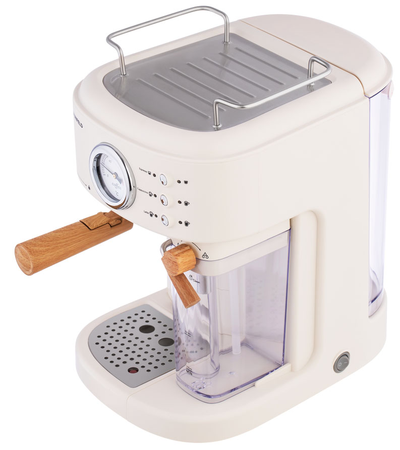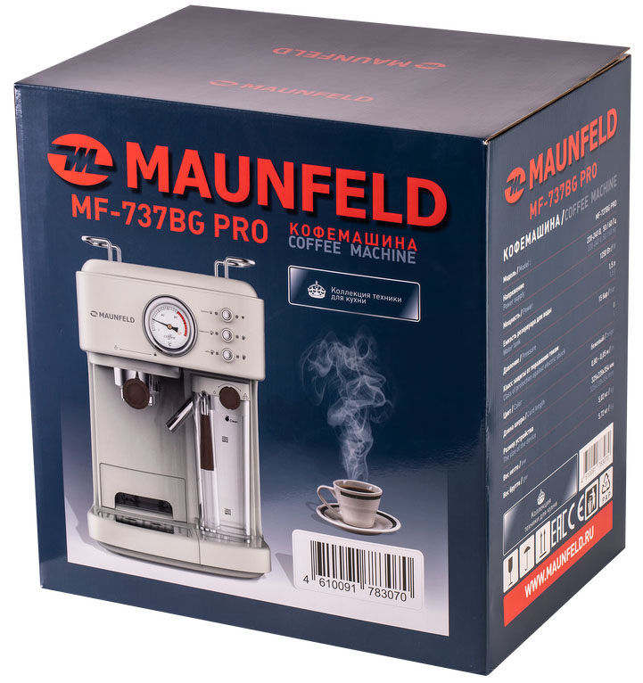 В модели Maunfeld MF-737BG PRO используется молотый кофе: экспериментируйте с сырьем крупного и среднего помола, чтобы добиться идеального вкуса. Данная рожковая кофемашина предназначена в основном для приготовления эспрессо и капучино; благодаря быстрой работе и отсутствию кофейной взвеси в чашке она востребована как в быту, так и в офисах.