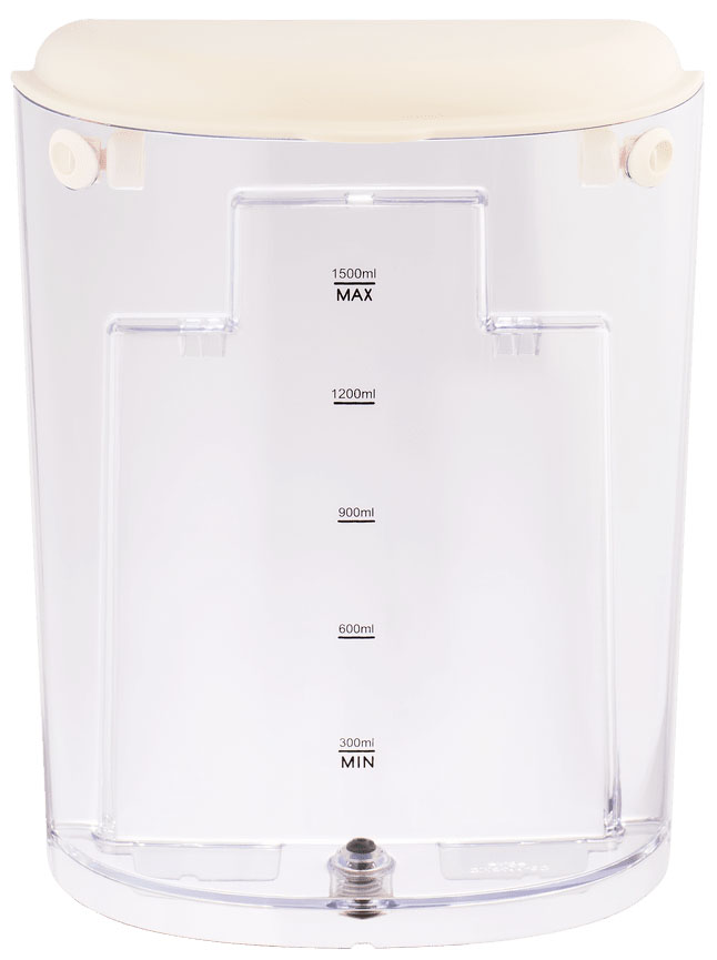 Съемный контейнер для воды во встраиваемых и отдельно стоящих кофемашинах — удобный аксессуар, позволяющий ускорить процесс приготовления напитков. Прозрачные контейнеры с легким доступом могут размещаться на фронтальной или верхней части машины. Для удобного извлечения они оснащаются ручками, залив воды производится через отверстие, которое можно закрыть плотной крышкой. Форма контейнера, как правило, прямоугольная, а материалом изготовления служит прозрачный безопасный пластик. Контейнеры могут оснащаться датчиком уровня воды для напоминания о необходимости их заполнения.