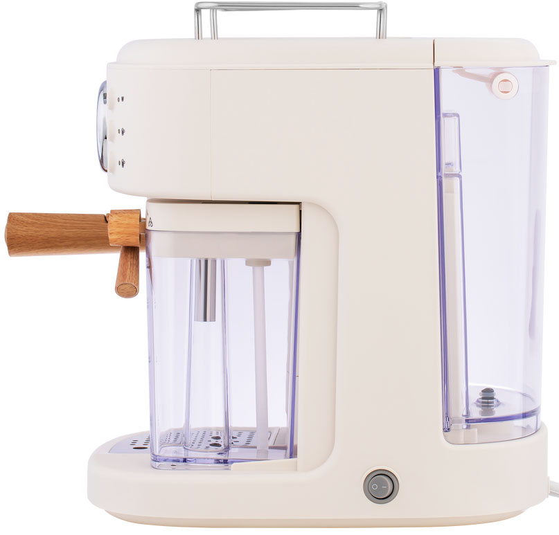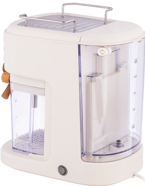 Визуальные характеристики кофемашины играют важную роль при выборе. Цвет корпуса этой модели — бежевый. Основной материал поверхности — пластик. Металлический рожок не только выглядит стильно, но и гарантирует долговечную бесперебойную работу.