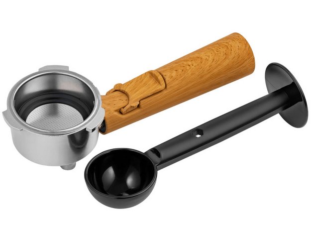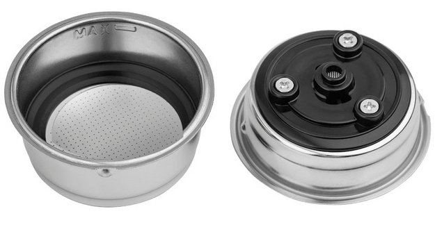 Рожок в рожковых кофемашинах всегда изготавливается из металла и пластика. Рожок, он же портафильтр или холдер, представляет собой фильтродержатель с ручкой, основной элемент конструкции рожковой кофемашины. Молотый кофе помещается в рожок, уплотняется, после чего он закрепляется в варочной группе машины. Стальные массивные рожки хорошо сохраняют температуру и позволяют готовить напитки высокого качества. В машинах для дома рожок часто изготавливается из пластика или комбинации пластика и металла — такая конструкция отличается меньшей прочностью, но на вкус напитка почти не влияет.