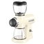 - Конструкция выполнена из литого металла, воронка для зерен и контейнер для молотого кофе — из прочного стекла, лезвия — из нержавеющей стали