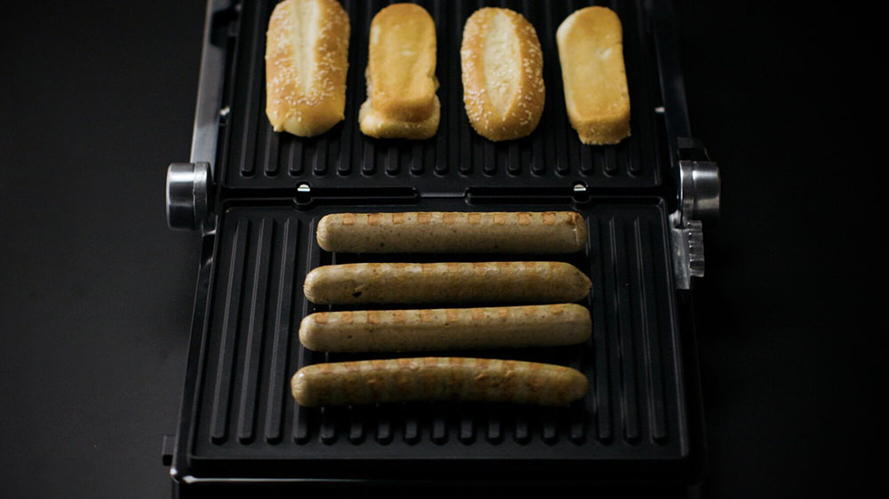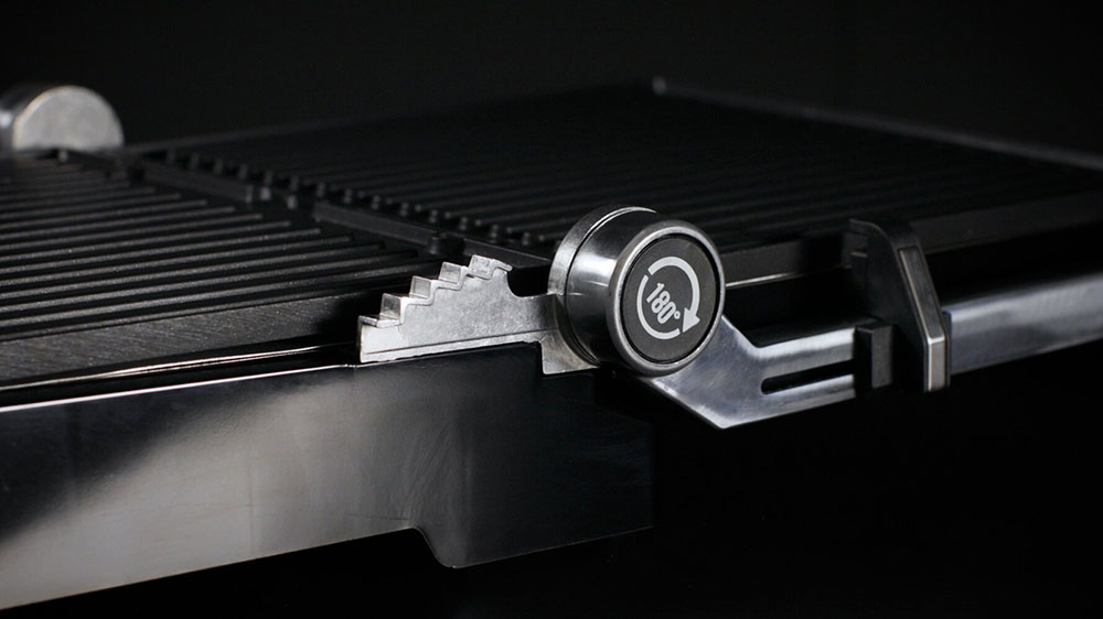 Гриль можно раскрыть на 180° и готовить разные блюда одновременно на обеих пластинах