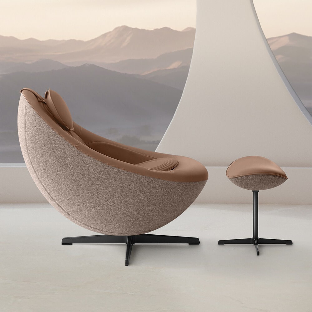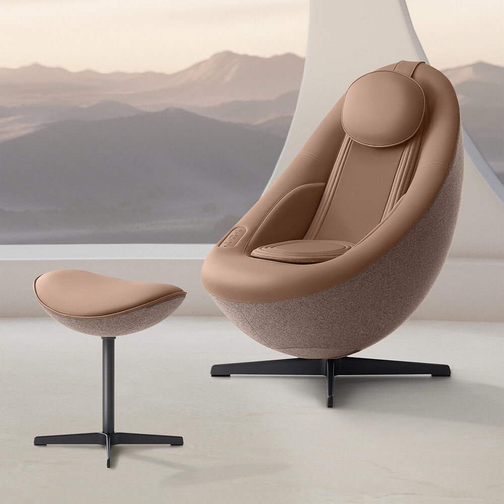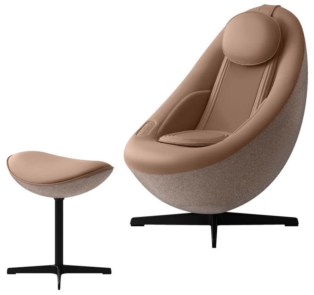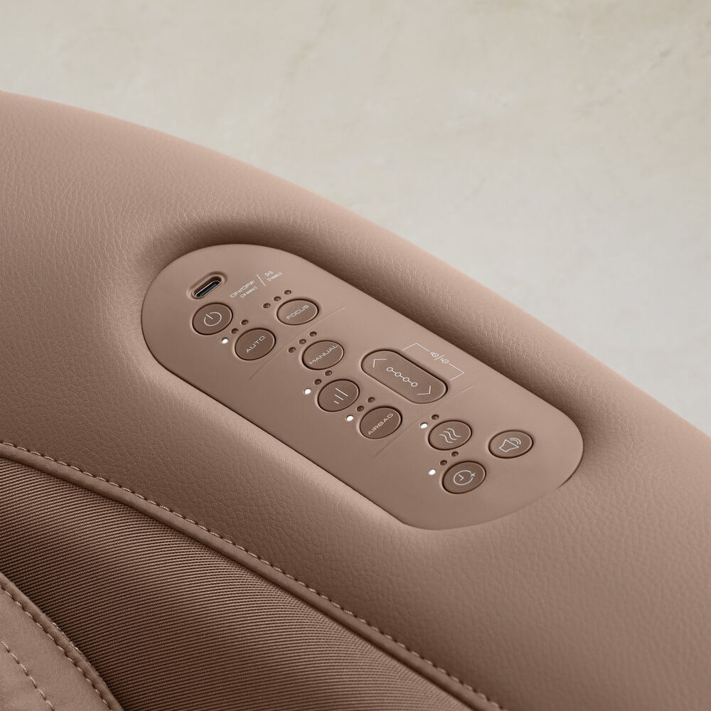 Массажное кресло выполнено в корейском интерьерном дизайне — оно идеально вписывается в обстановку. Удобная панель управления на подлокотнике с возможностью зарядки телефона и запуска музыки.