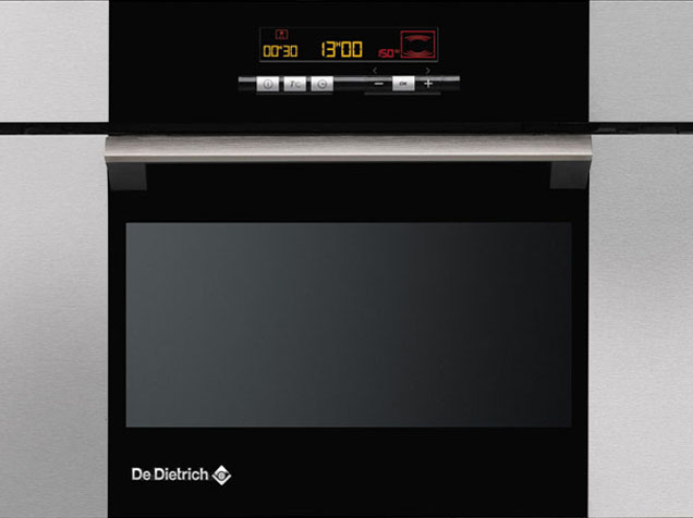 Благодаря яркой подсветке, которую обеспечивают галогенные элементы находящиеся внутри камеры, легко будет заметить даже малейшее изменение, произошедшее с блюдом в печи. Подсветка загорается автоматически при включении De Dietrich DME 785 X, а также в момент, когда пользователь открывает дверь камеры.