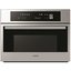Модели с откидной дверцей и верхней или нижней панелью управления — как правило, встраиваемые, с камерой большого объема и увеличенным набором возможностей. Некоторые модели снабжены ручками, другие открываются нажатием на фронтальную часть. Они могут устанавливаться в шкаф или колонну с другой бытовой техникой, однако высоту установки следует выбирать, исходя из роста пользователя. Откидывающаяся дверца может заслонять обзор, если СВЧ-печь установлена слишком высоко.