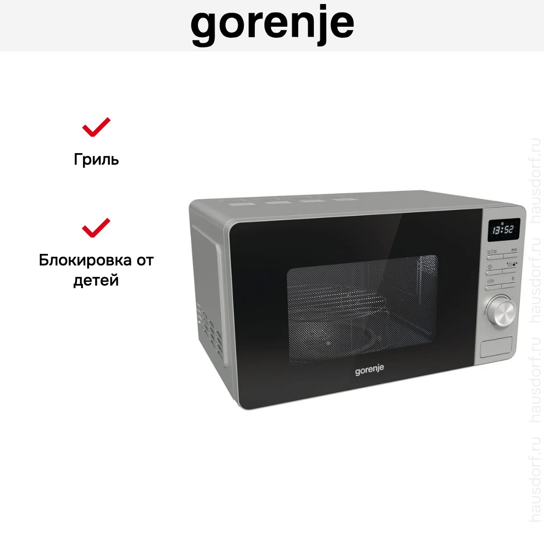 Отдельностоящая микроволновая печь Gorenje MO23A4X — компактное и полезное дополнение к уже имеющейся кухонной технике. Ее можно установить на шкаф, на свободную столешницу, но не рекомендуется ставить на другие приборы, например, холодильник. Цвет этой модели: нержавеющая сталь.
