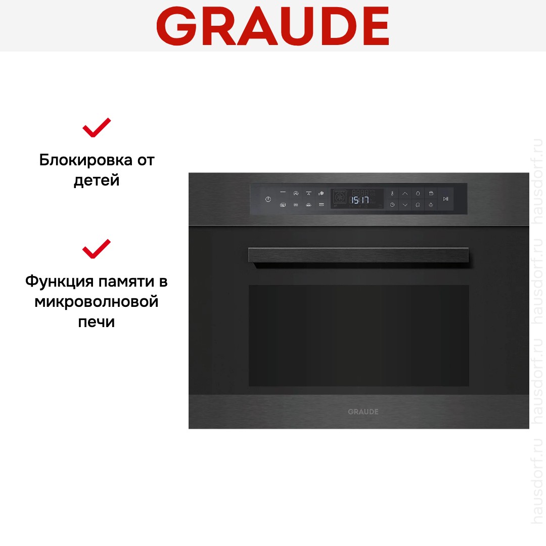 Встраиваемая микроволновая печь Graude MWG 45.0 SE — это бытовой прибор, который сочетает в себе лаконичный дизайн, высокую мощность и широкие функциональные возможности для современной кухни. Корпус и фурнитура выполнены в элегантном черном цвете, что делает устройство универсальным решением для интерьеров в стиле минимализм, хай-тек или классика с темными акцентами. Откидная дверца с удобной ручкой и трехслойным стеклопакетом надежно защищает от потерь тепла и обеспечивает безопасность.