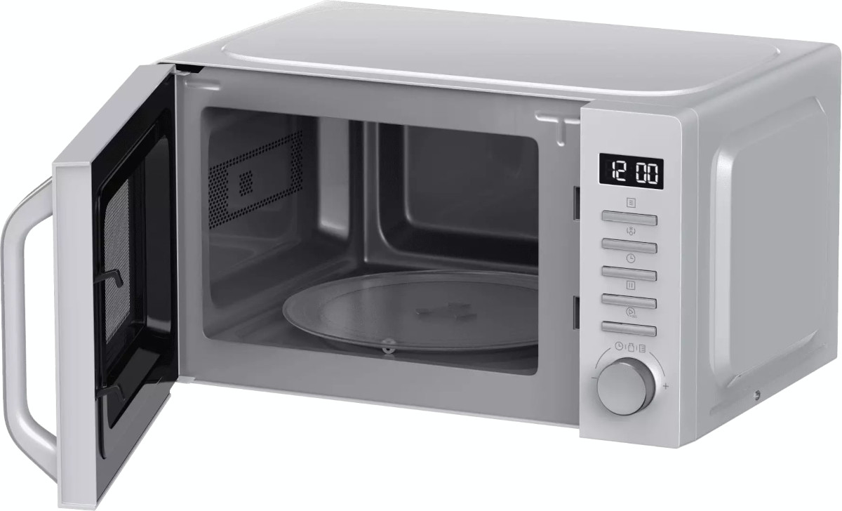 Полезный объем для готовки — 20 л. Для установки и прогрева посуды используется классическое вращающееся блюдо. Понятное электронное управление не вызовет трудностей ни у кого из вашей семьи. Для изменения настроек или выбора программ используются следующие переключатели: кнопочные + поворотные.