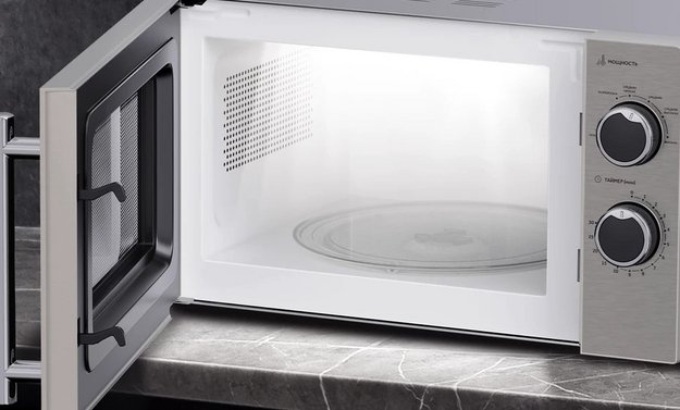 Полезный объем для готовки — 20 л. Для установки и прогрева посуды используется классическое вращающееся блюдо. Стандартное механическое управление не вызовет трудностей ни у кого из вашей семьи. Для изменения настроек или выбора программ используются следующие переключатели: поворотные.
