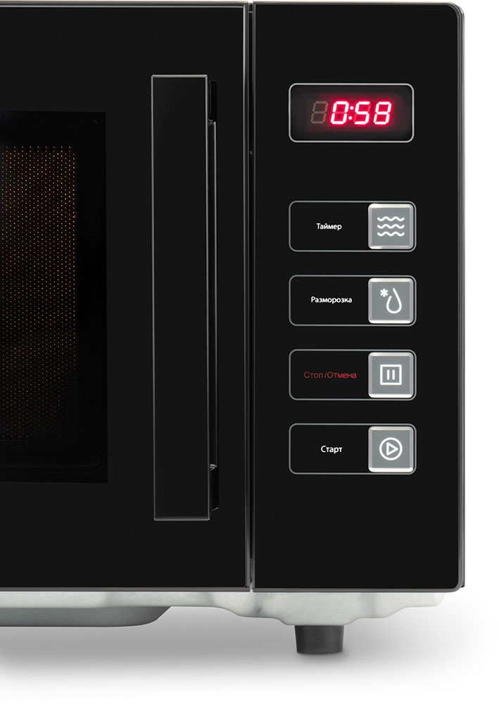 Материал внутренней поверхности — эмаль легкой очистки. Полезный объем для готовки — 23 л. Для установки и прогрева посуды используется классическое вращающееся блюдо. Понятное электронное управление не вызовет трудностей ни у кого из вашей семьи.