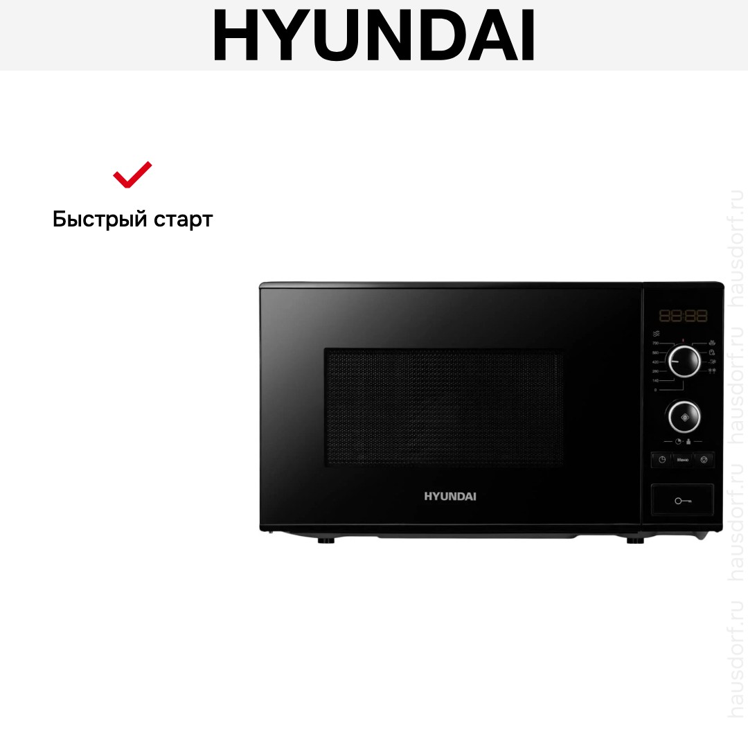Количество режимов в данной модели Хендай: 3 шт. Для обработки продуктов и готовых блюд используются следующие виды нагрева: Микроволны, Автоматический режим разморозки, Автоматический режим приготовления. Если вы спешите, а еду нужно разогреть, используйте быстрый старт — благодаря ему 30 секунд прибор работает на полной мощности. Отдельная опция для размораживания продуктов и полуфабрикатов облегчает жизнь — не нужно самостоятельно настраивать параметры. Автоматические программы для приготовления добавлены производителем также для упрощения работы.