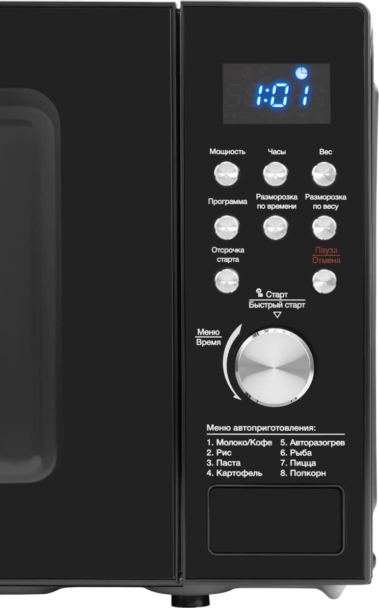 Вы можете выставлять время для приготовления блюда или разогрева. В разных моделях предельное время различается, а регулировать его можно либо кнопками, либо поворотным регулятором.