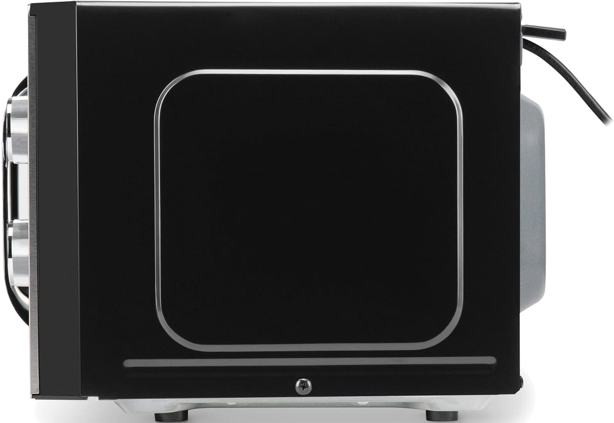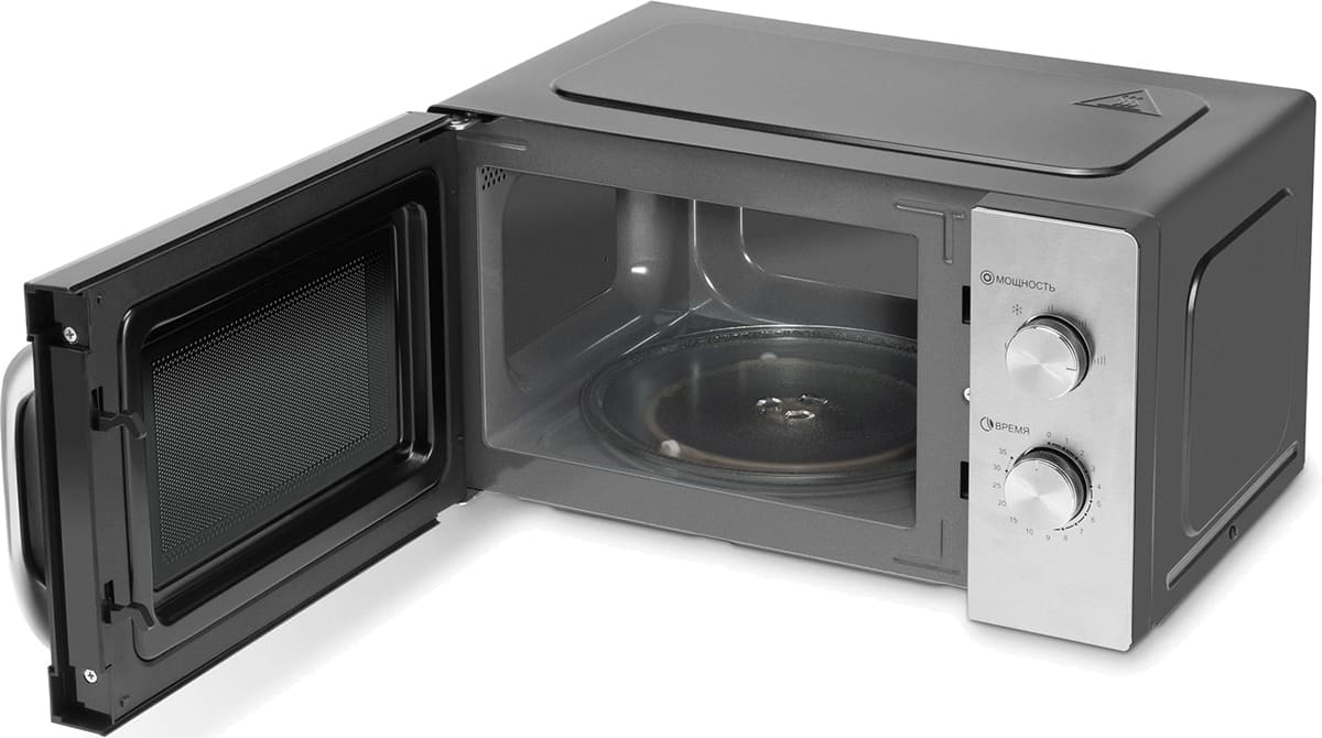 Материал внутренней поверхности — эмаль. Это самое распространенное покрытие, так как оно зарекомендовало себя высоким качеством, устойчивостью к механическим воздействиям и простотой ухода. Полезный объем для готовки — 20 л. Для установки и прогрева посуды используется классическое вращающееся блюдо. Стандартное механическое управление не вызовет трудностей ни у кого из вашей семьи. Для изменения настроек или выбора программ используются следующие переключатели: поворотные.