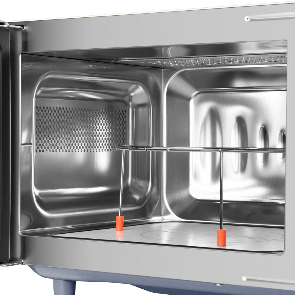 Нержавеющая сталь — быстро нагревается и хорошо переносит высокие температуры, поэтому ее используют в микроволновках с конвекцией.