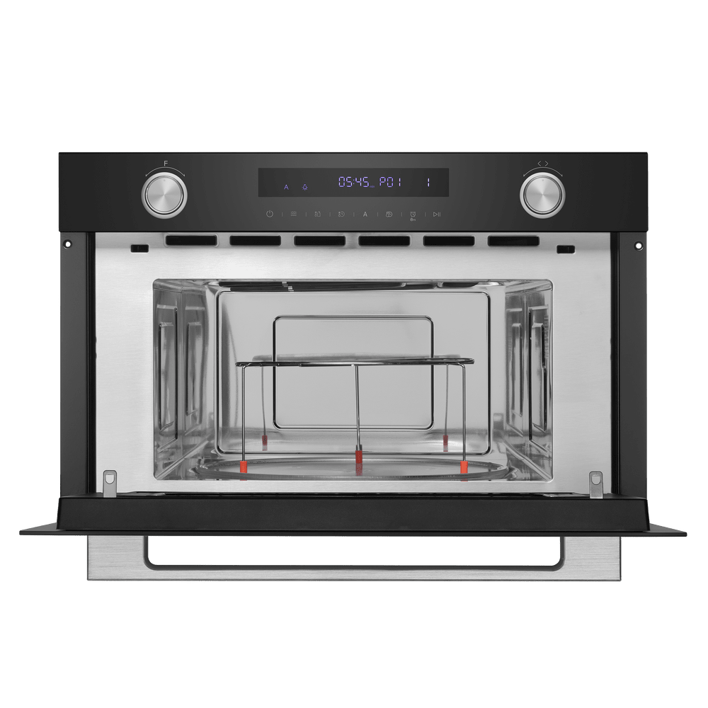 Нержавеющая сталь — быстро нагревается и хорошо переносит высокие температуры, поэтому ее используют в микроволновках с конвекцией.